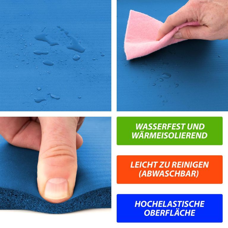 Wysokiej jakości mata gimnastyczna wykonana z przyjaznej dla skóry pianki o grubości 15 mm. Antypoślizgowy i łatwy do zwinięcia po użyciu. W zestawie praktyczny pasek ułatwiający przenoszenie. Podkładka jest odporna na rozdarcia, wodoodporna i termoizolacyjna. Izoluje wstrząsy i dźwięki uderzeniowe, a tym samym chroni stawy.