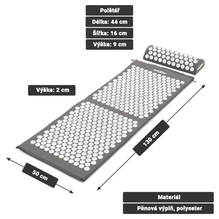 MAXXIVA Podkładka akupresurowa z poduszką, 130x50 cm, szara