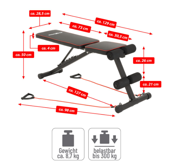 MAXXIVA Regulowana ławka do ćwiczeń, 127 x 28,5 cm
