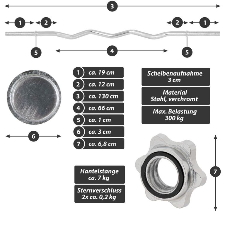 Zakrzywiony kształt gryfu pozwala na różne opcje chwytu w celu ćwiczenia różnych partii mięśni ramion oraz pozwala na ćwiczenie określonych grup mięśni, a także skomplikowanych ćwiczeń całego ciała. Idealny do wymagającego treningu z mniejszym obciążeniem nadgarstka niż ze sztangą. Dzięki zakrzywionemu kształtowi gryf MAXXIVA jest szczególnie odpowiednia do efektywnego i wydajnego treningu ramion. Kompatybilny ze wszystkimi płytami obciążającymi 30 mm, w tym 1 parą zamków gwiaździstych. Łączniki gwiaździste można stosunkowo szybko odpiąć i ponownie zamocować, co gwarantuje mocne zamocowanie ciężarka.