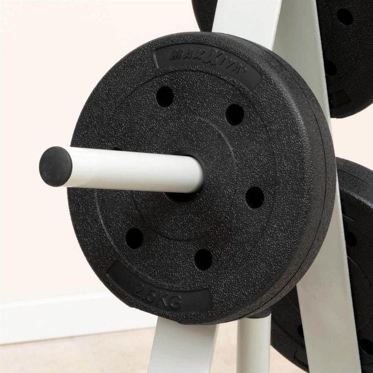 Średnica wewnętrzna jest standardowa i dlatego nadaje się do wszystkich standardowych prętów długich, krótkich i kolankowych. Płyty nośne z wypełnienia cementowego i wytrzymałej obudowy z tworzywa sztucznego. Delikatny dla podłogi, delikatny dla materiału i cichy podczas układania. Obciążniki pasują do wszystkich hantli z uchwytem na dysk Ø 30/31 mm. Idealny na siłownię iw domu.