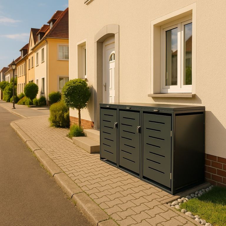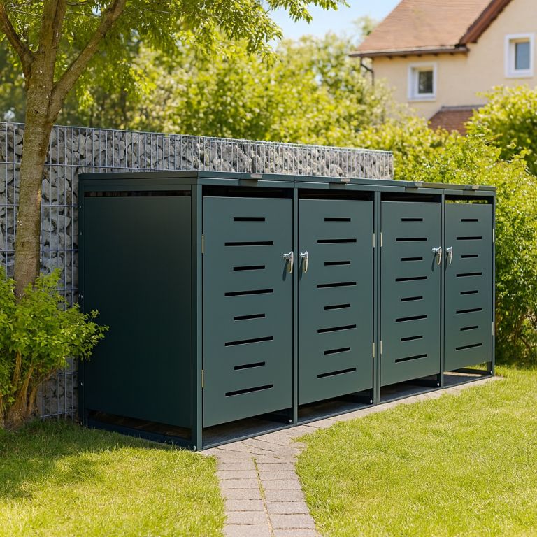 Koniec z nieestetycznymi koszami na śmieci – ukryj je w stylowym metalowym schowku z wentylacją i górną pokrywą.
