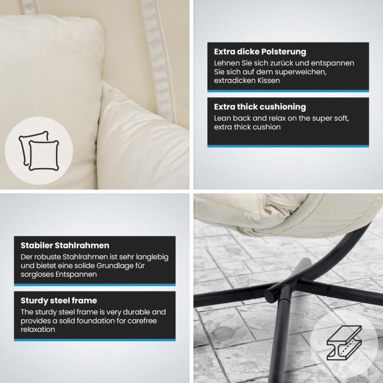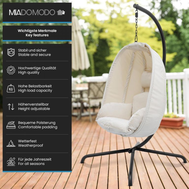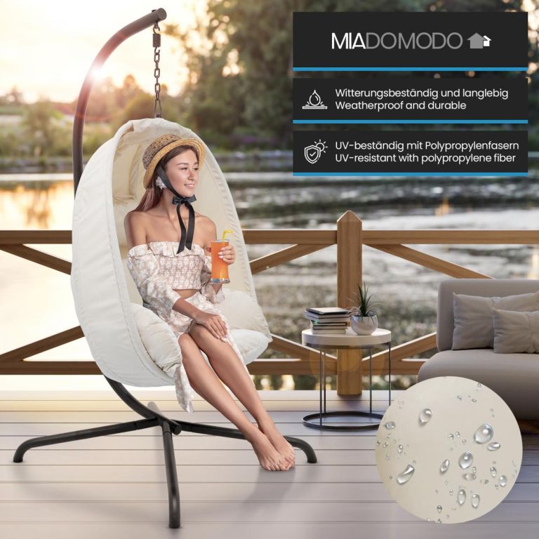MIADOMODO fotel bujany wiszący beżowy, nośność 160 kg