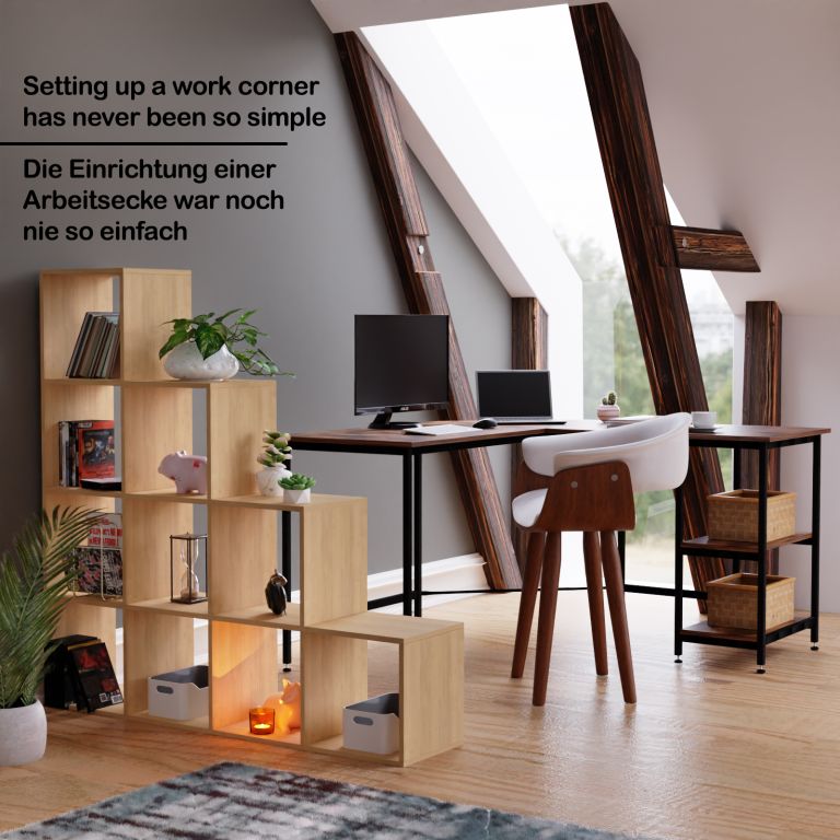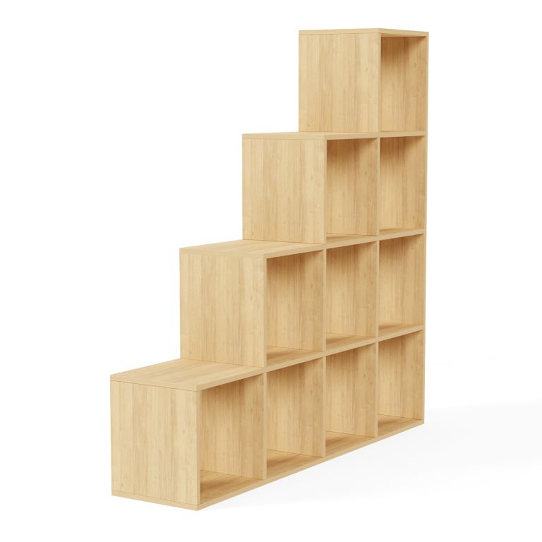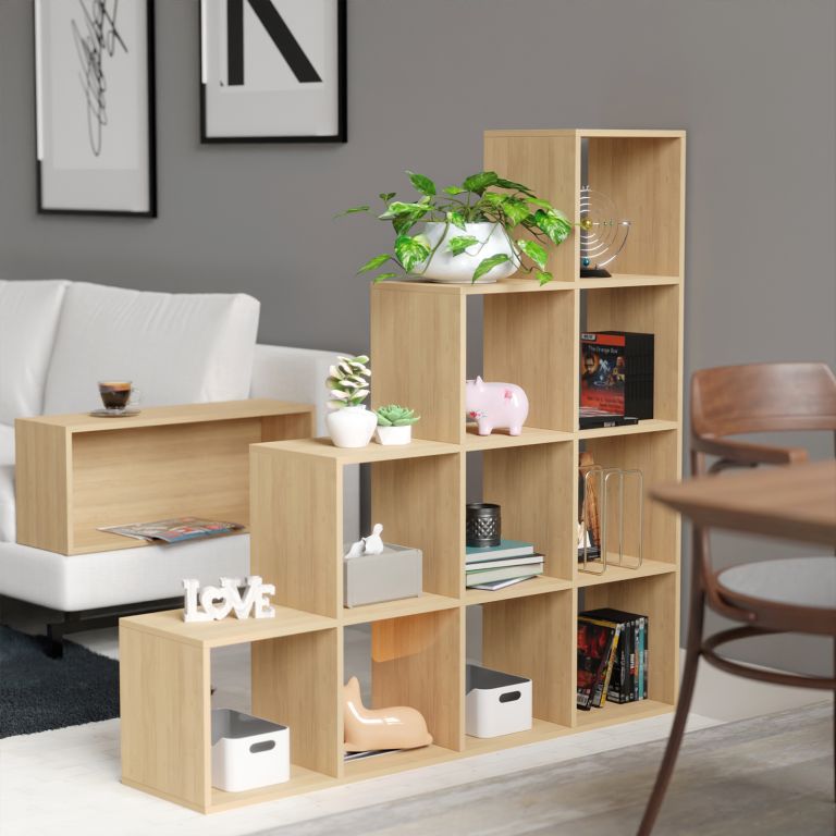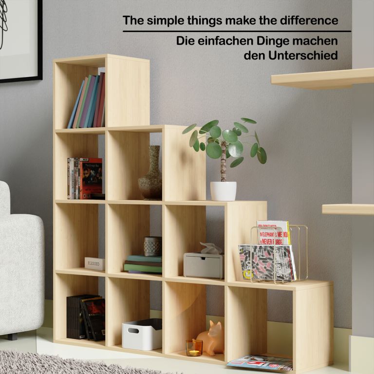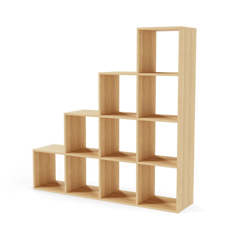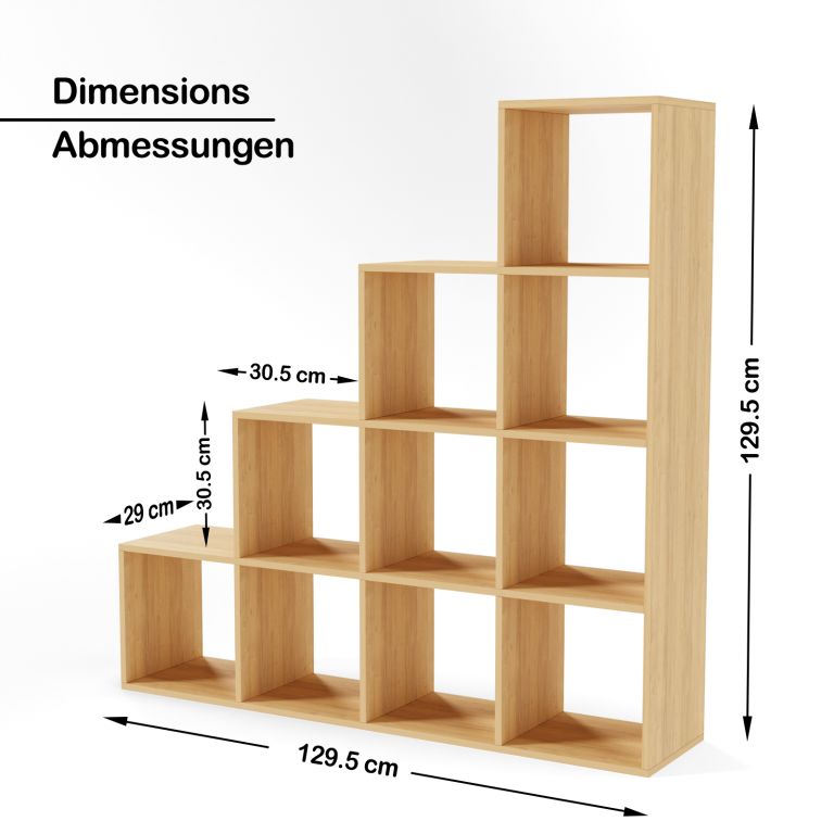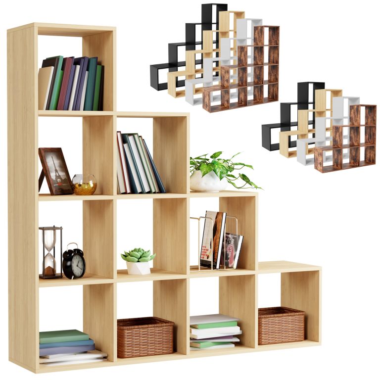 Istnieje prawdopodobnie ponad tysiąc sposobów na zmianę wystroju pomieszczenia. Czasami są to proste rzeczy, które tchną nowe życie w pokój. Na przykład nasza wielopoziomowa półka, która służy zarówno jako przegroda w pokoju, jak i półka do przechowywania. Przechowuj wszystkie książki na półce i stwórz przytulny kącik. Jednocześnie półka na dokumenty może być również używana w biurze. Najpiękniejsze zdjęcia z podróży i akcesoria domowe mogą wkrótce zyskać nowe miejsce w Twoim domu. Regał schodowy posiada 10 przestronnych przegródek, które zapewnią mnóstwo miejsca do przechowywania. Nasz regał wykonany jest z łatwej do mycia, pokrytej melaminą płyty MDF.