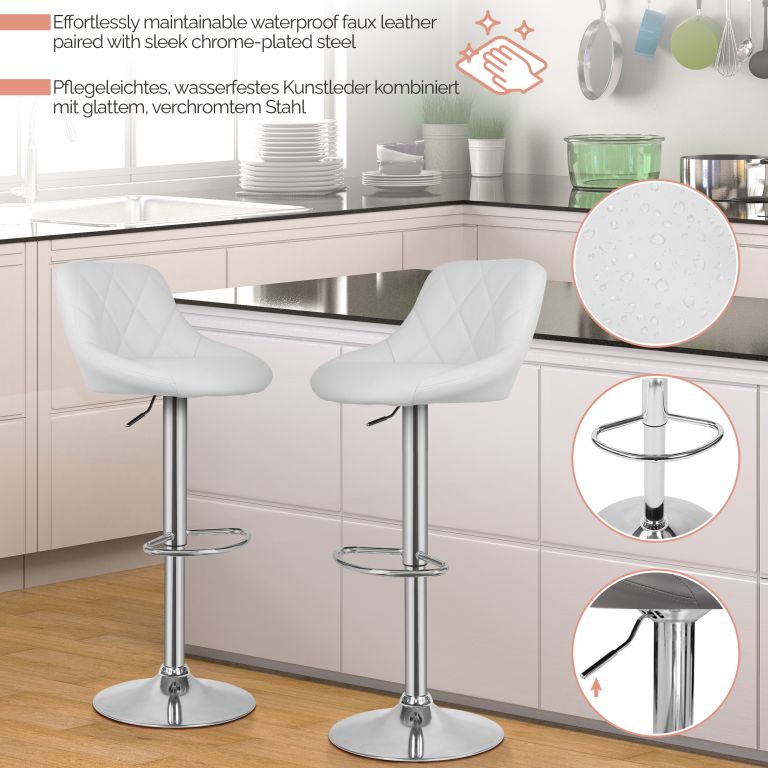 MIADOMODO Stołek barowy 2 szt, bez podłokietnika, biały