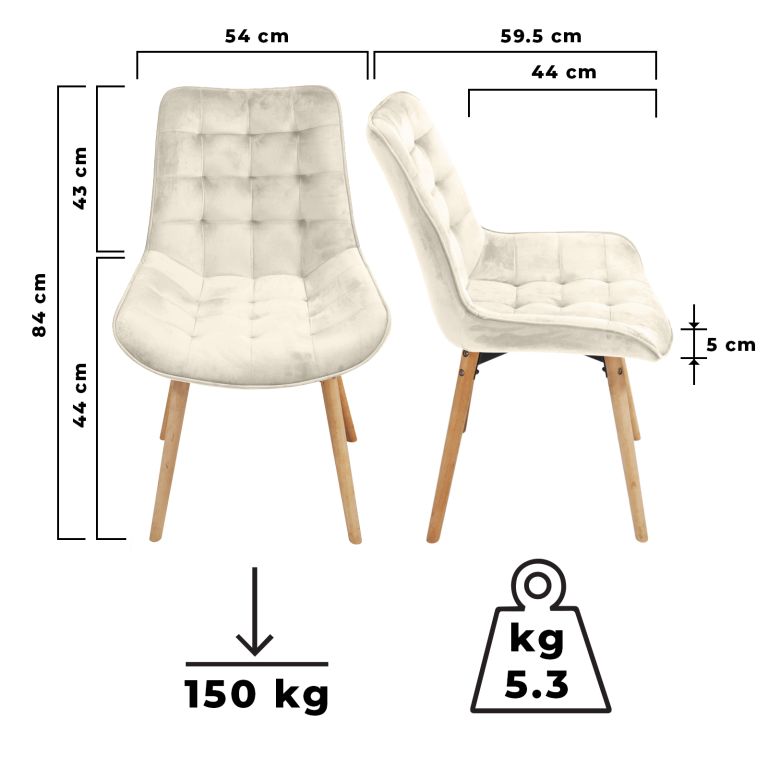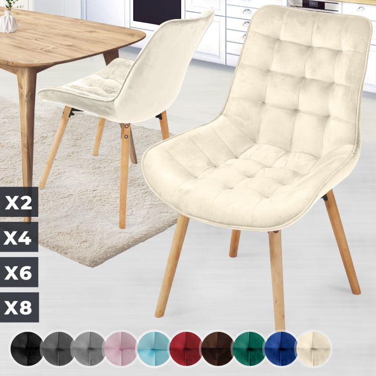 MIADOMODO Zestaw pikowanych krzeseł do jadalni, kremowy 2szt