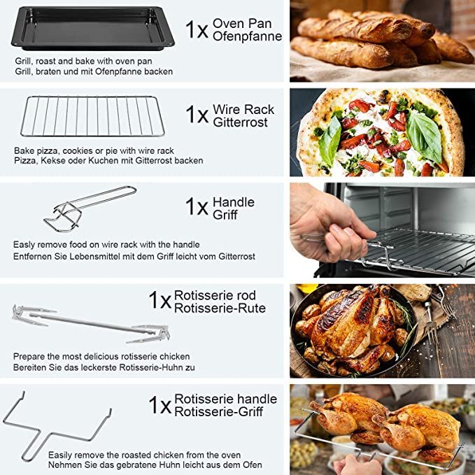 Przygotuj jedzenie w mgnieniu oka. Czarna obudowa idealnie pasuje do każdego rodzaju wyposażenia kuchni w apartamentach typu studio, akademikach, przyczepach kempingowych. Nasz mini piekarnik o pojemności 60 litrów pomoże Ci osiągnąć doskonałe rezultaty gotowania.