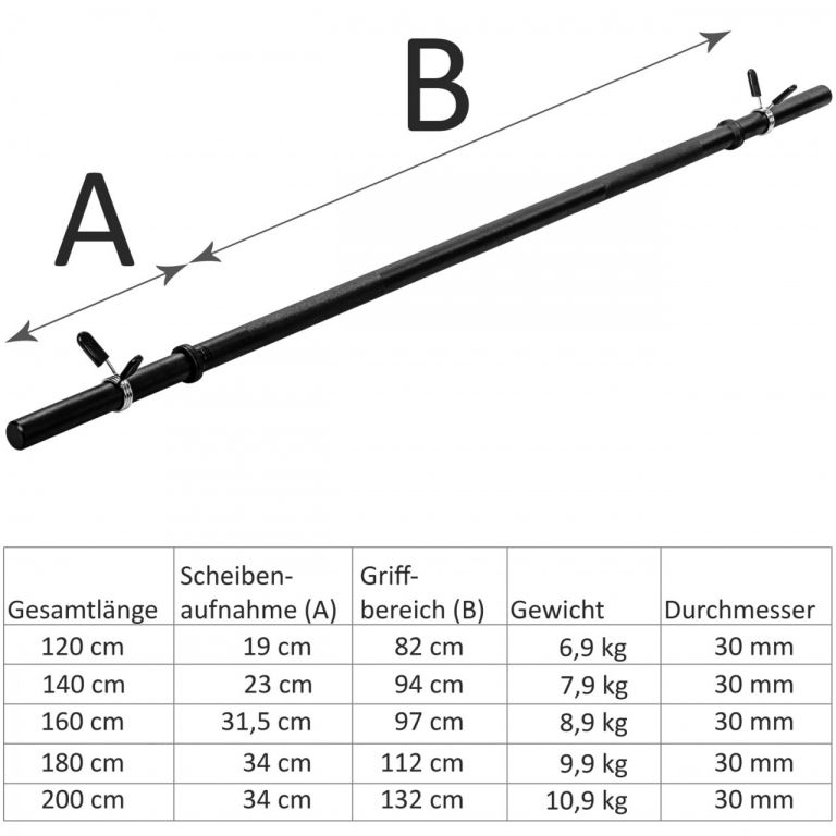 Profesjonalna sztanga z obciążeniem MOVIT®. Zapięcia w kształcie gwiazdy zapewniają, że ciężarek zawsze mocno i bezpiecznie spoczywa na sztangi. Zapobiegają również nieprzyjemnemu grzechotaniu krążków ważących. Aby ręce nie ślizgały się podczas treningu, na poprzecznie ryflowanym drążku znajdują się uchwyty. Sztanga posiada dwa niezniszczalne gwinty trapezowe - najbezpieczniejszy sposób mocowania ciężarków. Długi gryf o średnicy 30 mm ma standardowy rozmiar, co zapewnia bezpieczne zamocowanie wszystkich dostępnych na rynku wag.
