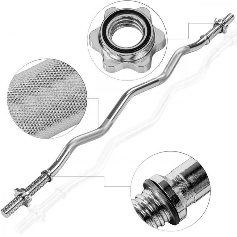 Zestaw fitness z gryfem i wyposażeniem oszczędza miejsce i jest łatwy do transportu, dzięki czemu idealnie nadaje się do podróży i do domu. Falisty drążek na obciążenia ma ergonomiczny kształt do łagodnego treningu na łokciach i nadgarstkach. Antypoślizgowe uchwyty z poprzecznymi rowkami zapewniają pewny chwyt nawet podczas pocenia się. Czapki sprężynowe i sztanga wykonane są ze stali chromowanej, mocowanie obciążenia 30 mm (standard). Maksymalne obciążenie wynosi 120 kg. Aby zapewnić bezproblemowe ćwiczenia, produkty te zostały przetestowane przez SGS pod kątem szkodliwych substancji i zostały uznane za nieszkodliwe.