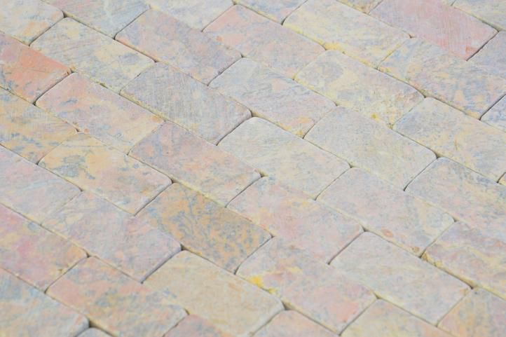 Mozaika z kamienia naturalnego 30 x 30 cm na siatce z tworzywa ułatwiającej montaż, to doskonała okładzina kamienna ścian i podłóg. Wykonana z małych kawałków kamienia marmurowego, przygotowana do bezpośredniego układania na ścianę lub podłogę. Zalecamy impregnowanie mozaiki preparatami przeznaczonymi do danego typu kamienia i używać fug przeznaczonych do mozaiki kamiennej.