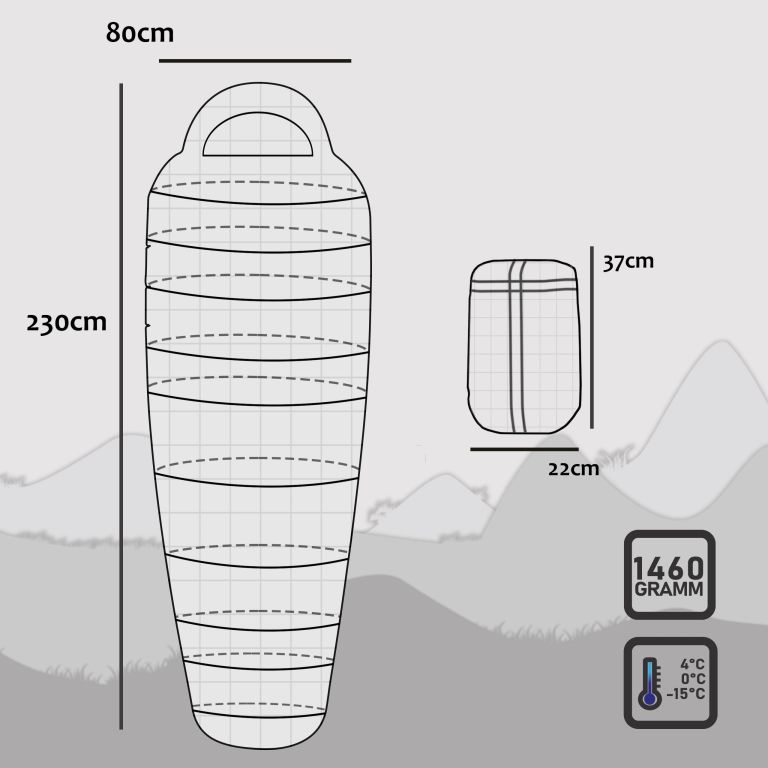 Podczas wędrówek po górach, biwakowania lub innych aktywności na świeżym powietrzu ten śpiwór będzie Twoim ulubionym towarzyszem! Zapewni ciepło i suchość jesienią i zimą. Jest bardzo wygodny w zimne noce do 0°C. Poniżej 0°C z odzieżą do -15°C jesteś dobrze chroniony przed zimnem.