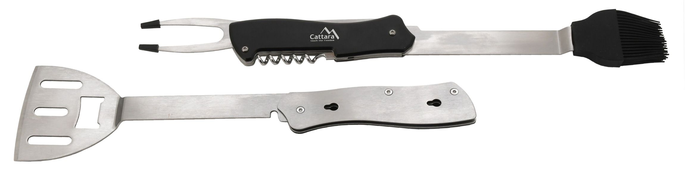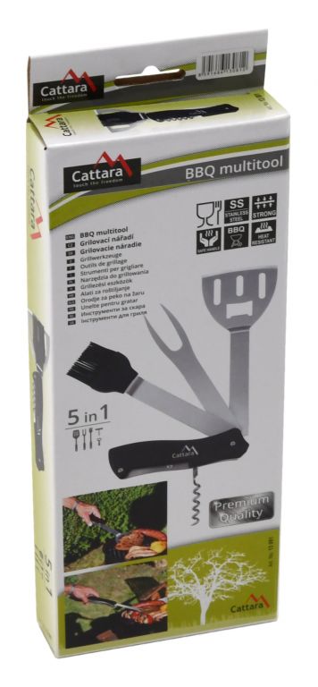 Narzędzie do grillowania 5w1 to praktyczny pomocnik podczas grillowania. Rękojeść wyposażona jest w czarną wyściółkę w części chwytnej dla wygodniejszego chwytu. Rękojeść można łatwo podzielić na dwa narzędzia. Narzędzie wyposażone jest w tokarkę, otwieracz do korkociągów, zatyczkę do butelek, widelec i kręgielnię. Może być używany w obozie, w obozie, gdzie indziej na wsi, ale także w domu na grilla.