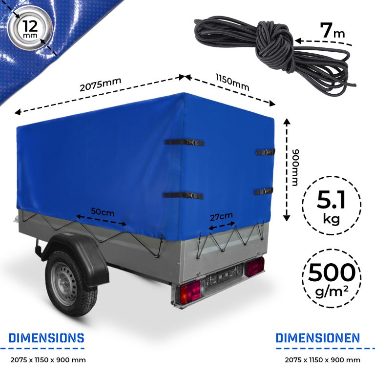 Niebieska plandeka PVC do przyczepki 2075x1150x900 mm