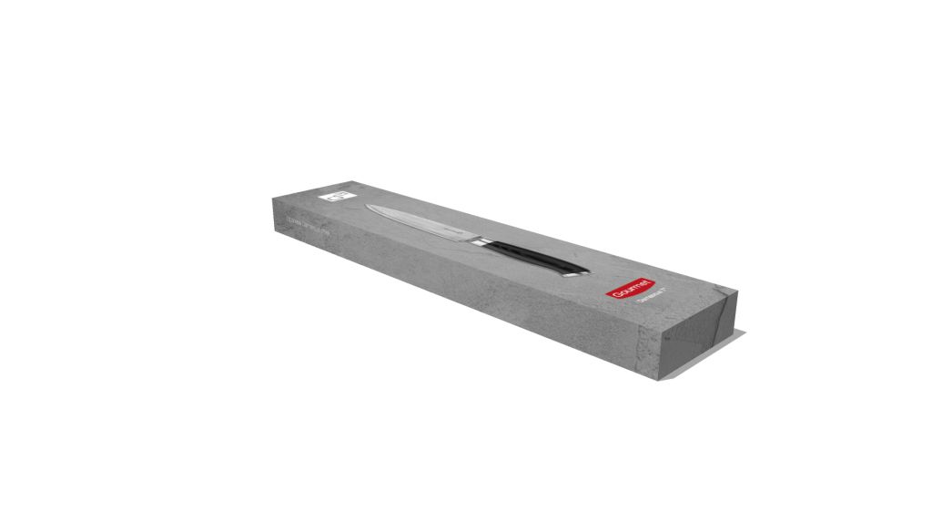 Rękojeść wykonana jest z bardzo mocnego i trwałego laminatu o nazwie Micarta. Micartu to płótno lub szkło z żywicą termoutwardzalną. Rezultatem jest solidny, mocny uchwyt, który nie psuje się z czasem. Gładkie, proste, czyste linie tego noża zdobią każdą kuchnię.