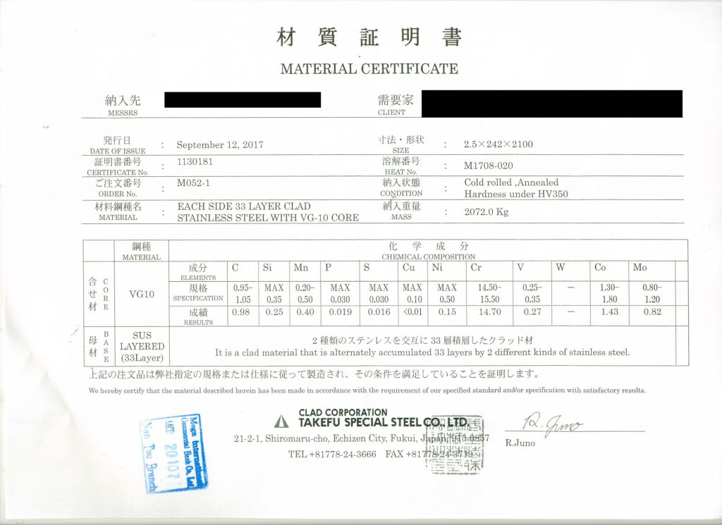 Noże kuchenne G21 z ostrzem ze stali adamaszku wykonane są w technologii metalurgii proszków, w której metal podstawowy (w tym przypadku stal VG-10) jest nakładany warstwami, które są stopniowo spiekane razem. Różny skład tych warstw powoduje różne zabarwienie.