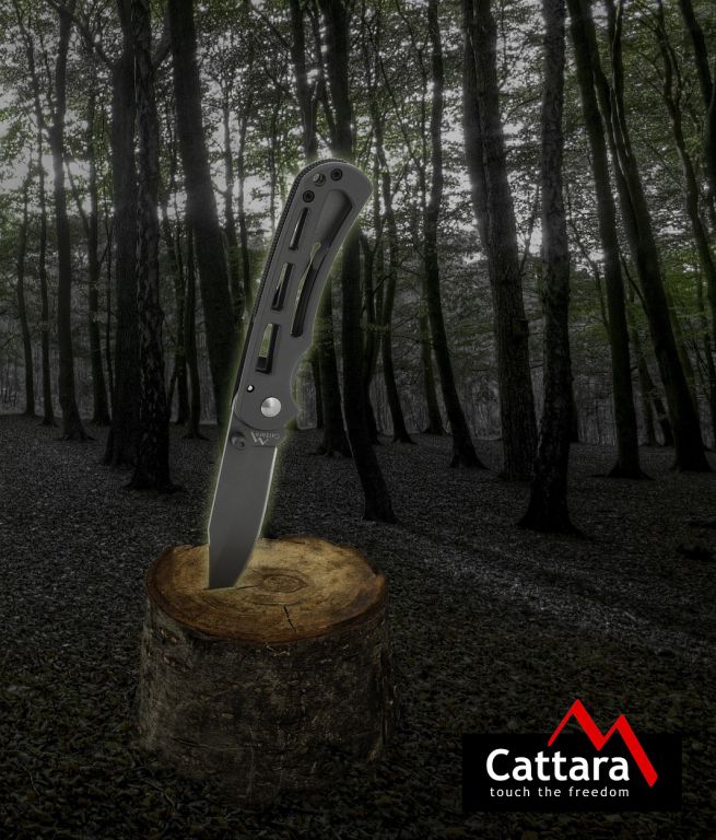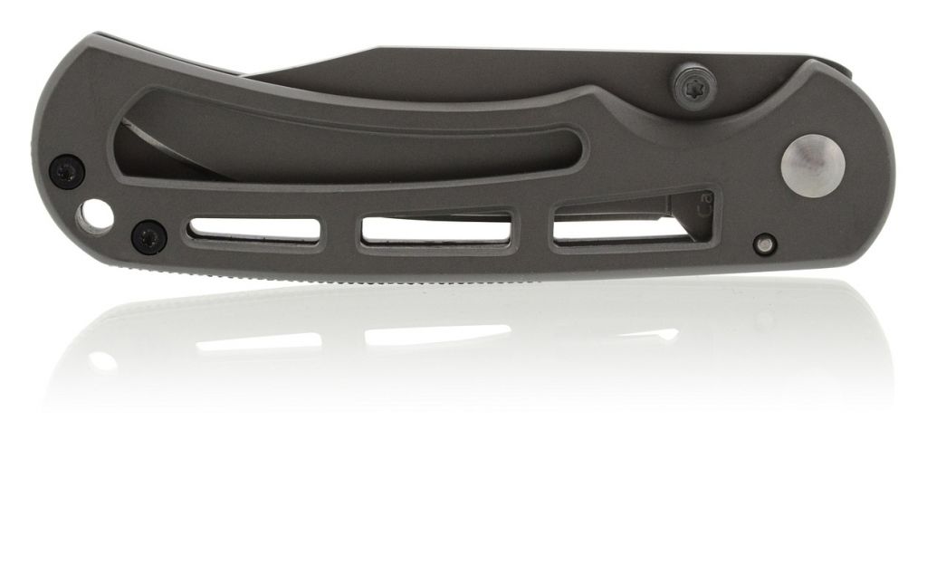 Z piastą po stronie ostrza nóż można otworzyć jedną ręką. Nóż jest wyposażony w bezpiecznik obsługiwany przez boczny ruch kciuka w dolnej części uchwytu.