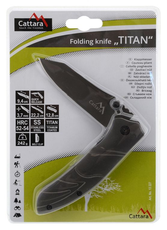 Titanium to wytrzymały, otwierany nóż z tytanową powierzchnią. Jest to przydatny pomocnik podczas biwakowania, wędkowania i innych zastosowań na śwież