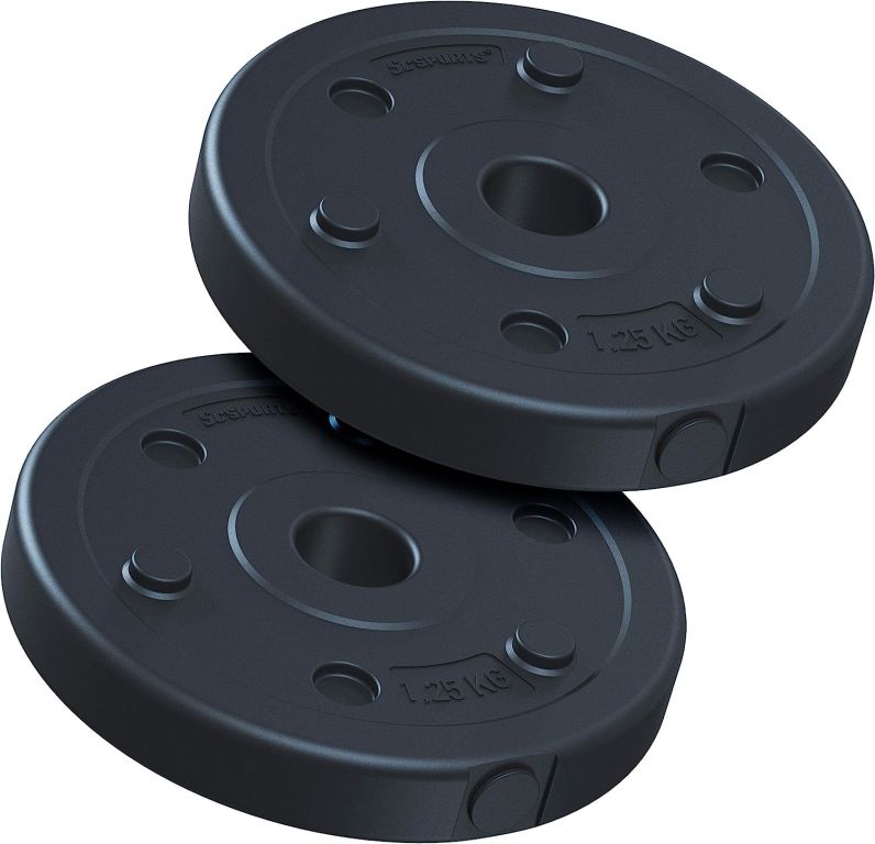 Ciche i trwałe obciążenia 2x1,25 kg z powłoką chroniącą podłogę, pasują do gryfów 30 mm.