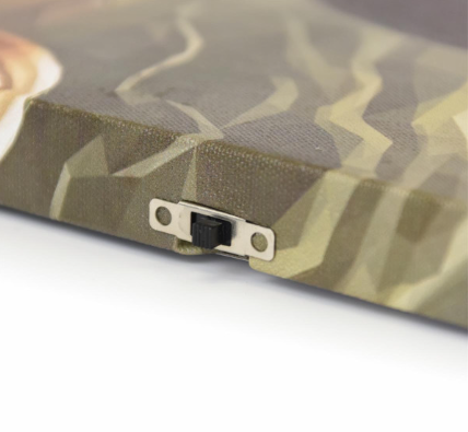 Obraz posiada solidną drewnianą ramę i płócienne pokrycie, a dzięki zasilaniu na baterie możesz go powiesić gdziekolwiek bez plątaniny kabli. Wbudowany timer ułatwia użytkowanie, a montaż jest szybki i prosty dzięki gotowemu uchwytowi z tyłu.