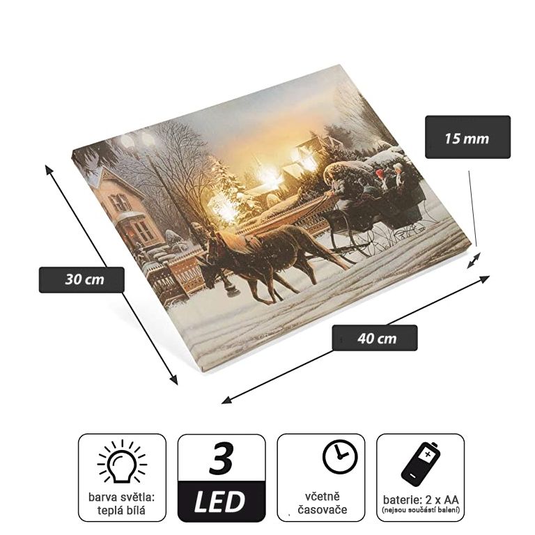 Obraz podświetlany sanie, 3 diody LED, 30 x 40 cm