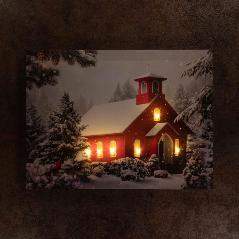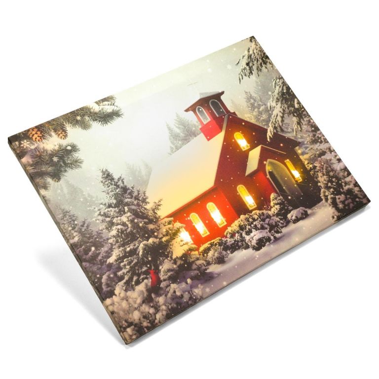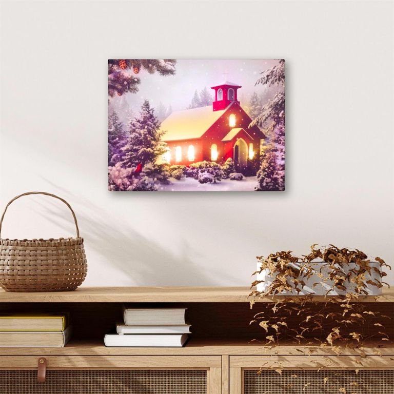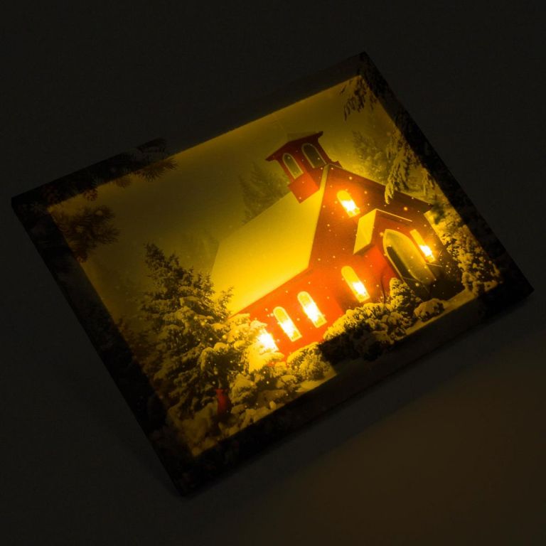 Obraz ścienny zaśnieżona kapliczka, 6 diod LED, 30 x 40
