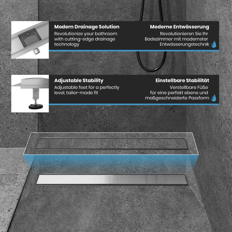 Odpływ wykonany z wysokiej jakości stali nierdzewnej oraz ABS, z powierzchnią odporną na korozję i zarysowania. Prosty montaż i łatwość utrzymania czystości to gwarancja komfortu na lata.