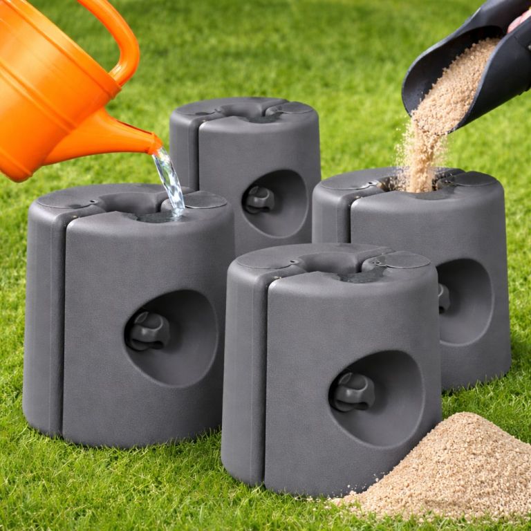 Zestaw 4 sztuk INSTANT odważników dla bezpieczeństwa i stabilności. Odważnik jest odpowiedni dla wszystkich pawilonów o średnicy nóg 20-40 mm. Łatwe w użyciu. Możliwość wypełnienia piaskiem, wodą lub małymi kamieniami.
