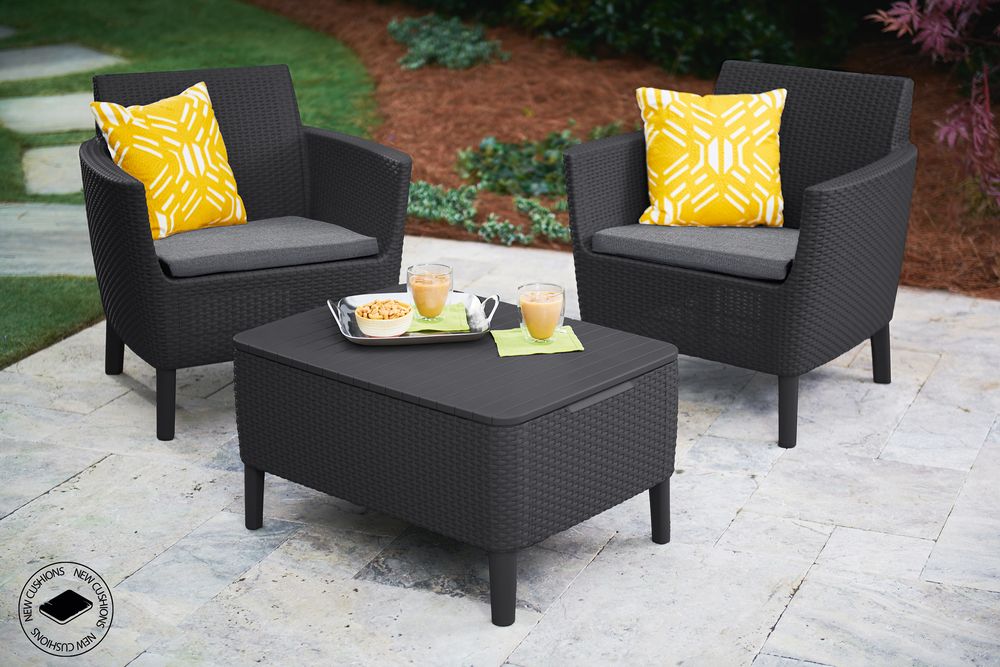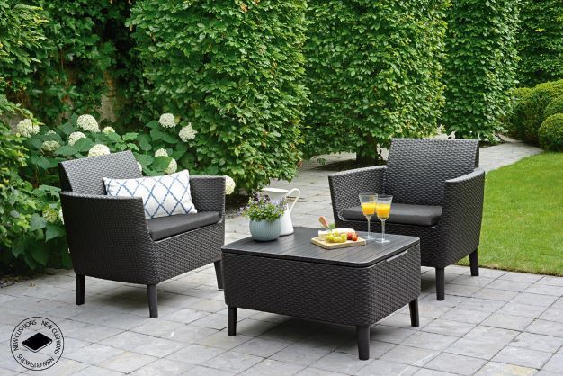 Balkon Salemo to absolutna nowość na rynku, zestaw, który wyróżnia się w nowoczesnym i retro stylu życia. Jest to elegancki zestaw z imitacji rattanu, składający się z dwóch krzeseł i stołu. Produkt wyposażony jest w wygodne poduszki w stylowych kolorach. Lekka i stabilna konstrukcja mebli jest idealna zarówno na zewnątrz, jak i wewnątrz. Zestaw jest bardzo łatwy w utrzymaniu. Produkt jest wysoce odporny na promienie UV i warunki atmosferyczne.