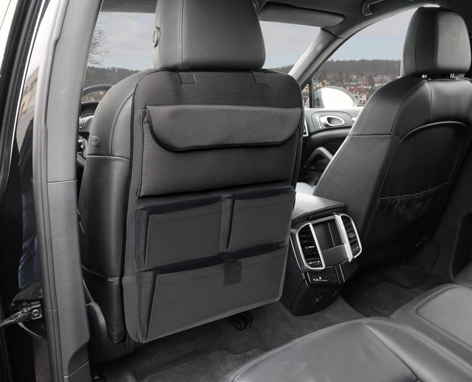 Organizer przeznaczony jest do mocowania z tyłu przedniego fotela. Górną część można przymocować paskami za zagłówkiem, dolną część paskami za siedzeniem. Organizer zawiera kilka różnych kieszeni odpowiednich na mapy, napoje i różne drobiazgi. Organizer jest produktem czeskim i wykonany jest z unikalnego materiału, który jest łatwy w utrzymaniu i bardzo przyjemny w dotyku.