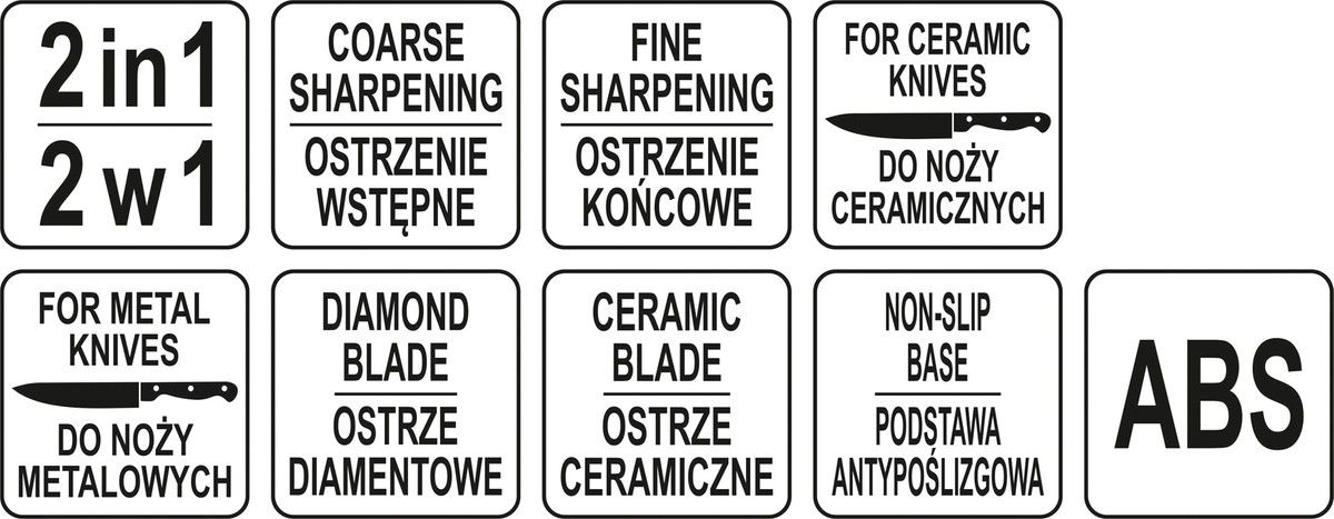 Wielofunkcyjna ostrzałka do noży stalowych, ceramicznych oraz nożyczek zapewni idealną ostrość bez wysiłku. Wyposażona w 2 ostrza.