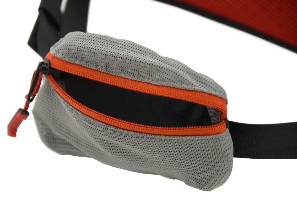 Pasek jest wyposażony w regulowaną klamrę, dzięki czemu bezpiecznie otacza różne obwód talii. Dzięki kieszeniom można nosić ze sobą przedmioty, których w przeciwnym razie nie można nosić bez ryzyka utraty lub uszkodzenia. Z tyłu znajduje się futerał na butelkę z gumką. Obudowa jest obustronnie otoczona dużymi kieszeniami z siatki z zamkiem błyskawicznym. Przód jest wyposażony w mniejszą torbę zapinaną na zamek. Pasek jest wyposażony w materiał odblaskowy, który zapewnia bezpieczeństwo przy ograniczonej widoczności.
