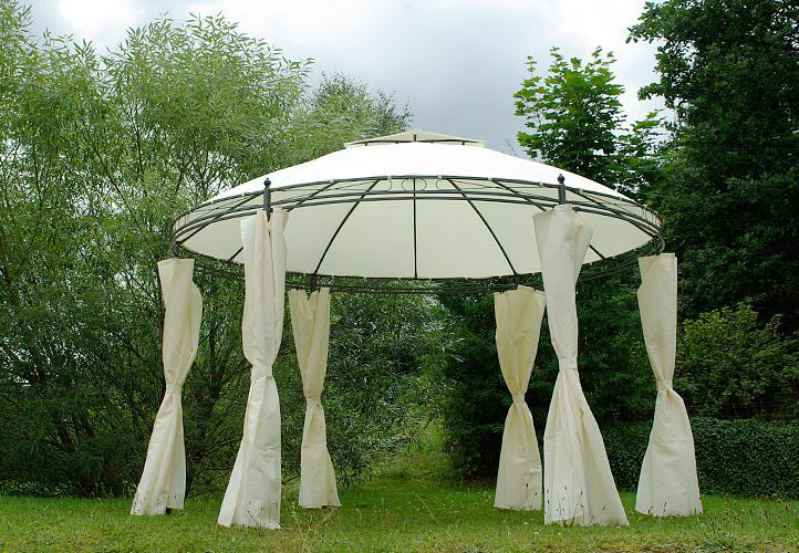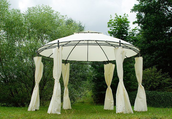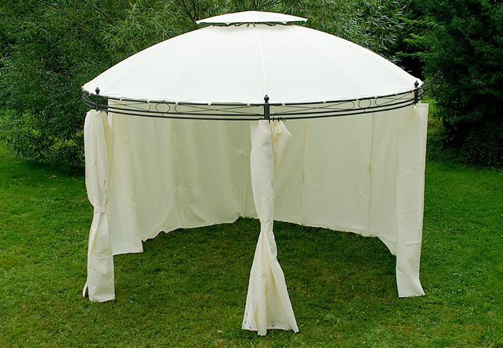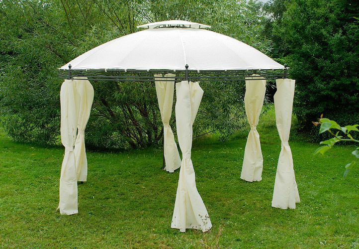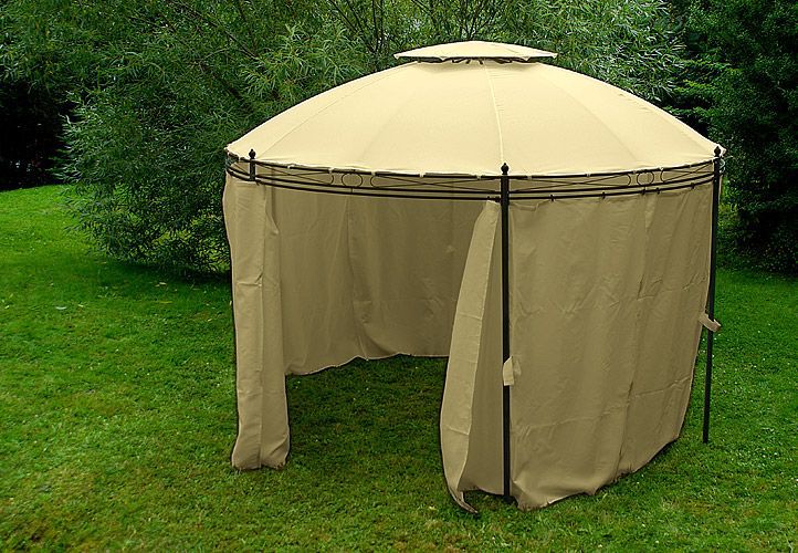 Pawilon ogrodowy okrągły - brązowy, 3,5 m - w tym ścianki boczne do całkowitego zamknięcia. jest atrakcją każdego ogrodu. Sprawdzi się on nie tylko na większe uroczystości na dworze, ale również jako miejsce gdzie możesz odpoczywać na co dzień! Zachwyca prostotą i elegancją. Na szczycie pawilonu znajduje się kryty otwór wentylacyjny. Nogo mają otwory, dzięki czemu przymocowanie konstrukcji pawilonu jest łatwe.