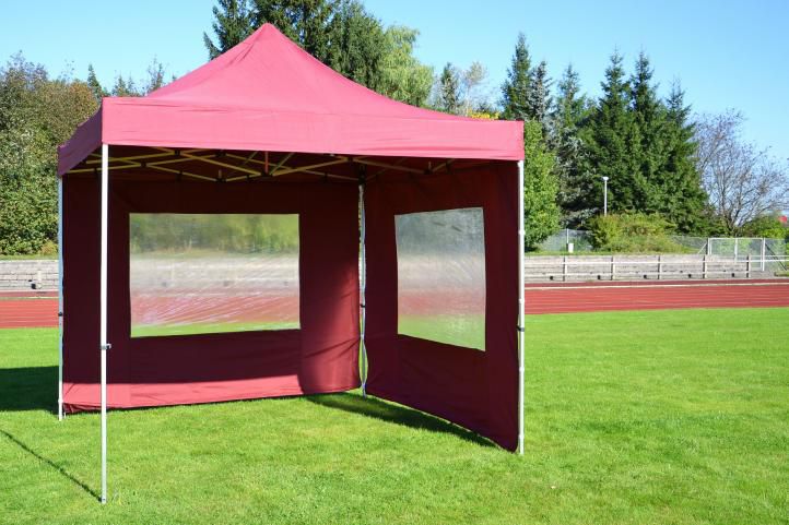 Pawilon ogrodowy rozkładany Profi 3 x 3 m - winny, 2 ściany boczne z oknami. Pawilon rozkładany jest automatycznie co zapewni wygodę. Sprawdzi się on nie tylko na większe uroczystości na dworze, ale również jako miejsce gdzie możesz odpoczywać na co dzień! Zachwyca prostotą i elegancją, jest atrakcją każdego ogrodu. Teleskopowe nogi wykończone stopkami które można przytwierdzić do podłoża, ścianki mocowane na rzepy i na haczyki. Nogi pozwoli regulację wysokości.