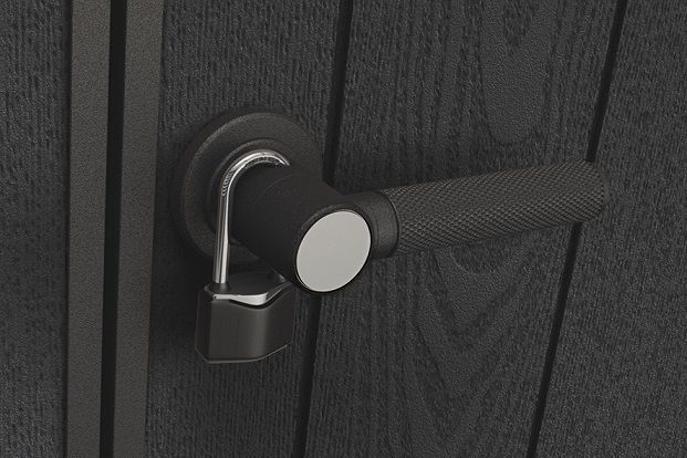 Niewymagający konserwacji domek jest wykonany z unikalnego materiału DECOCOAT, który jest inspirowany nowoczesnym wyglądem imitacji drewna.