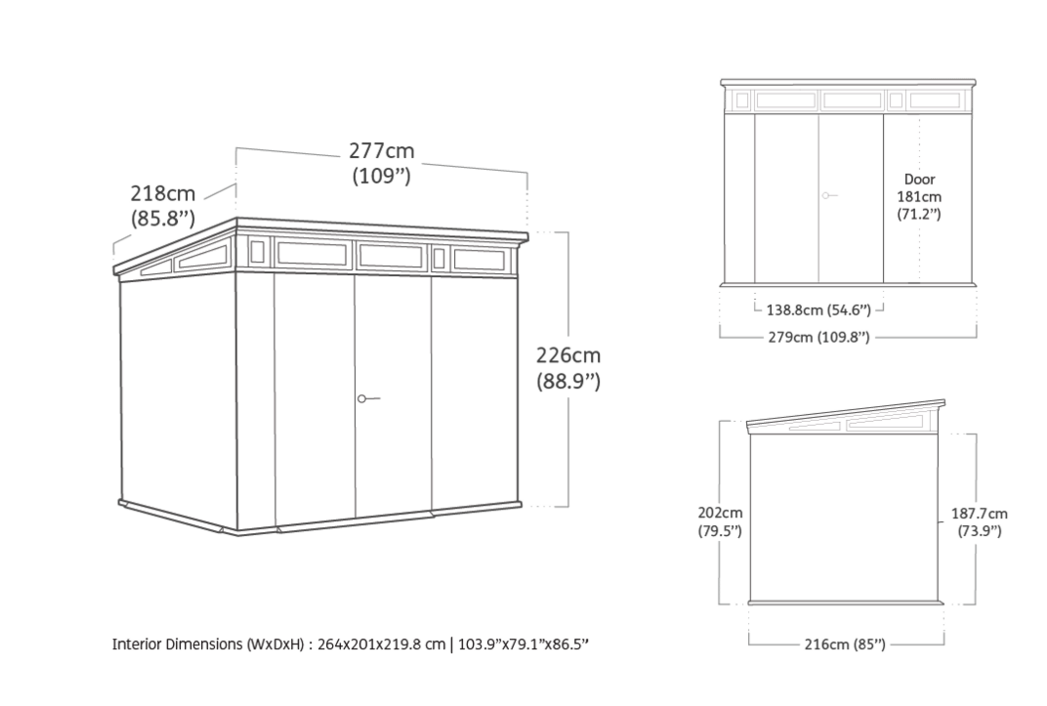 PENT Domek ogrodowy, 9x7, szary, 226 x 279 x 216 cm