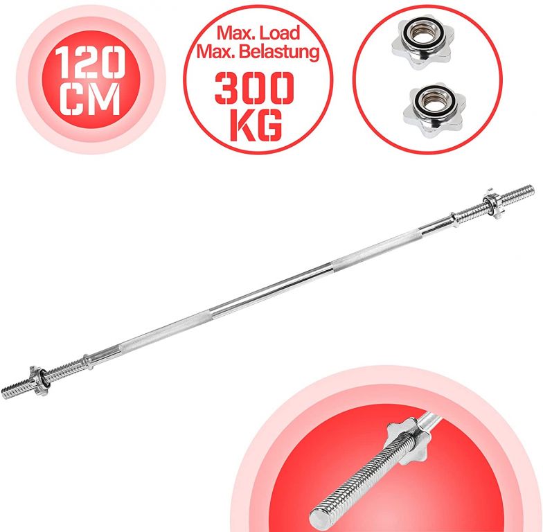 Gryf do treningu siłowego pozwala na maksymalne obciążenie 300 kg, które są mocno zamykane za pomocą gwiaździstych zamków. Pręt podnoszący jest odpowiedni dla wszystkich standardowych talerzy 30/31 mm. Dwa uchwyty o długości 20 cm na drążku fitness mają antypoślizgową powierzchnię, która zapewnia, że ręce nie ześlizgną się z drążka.