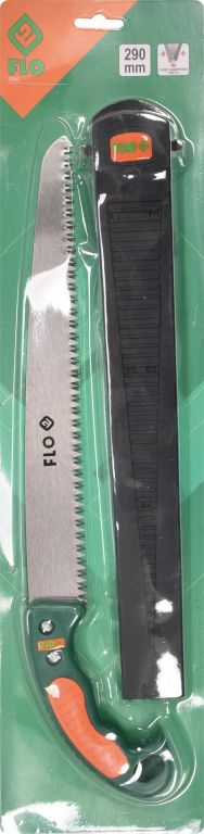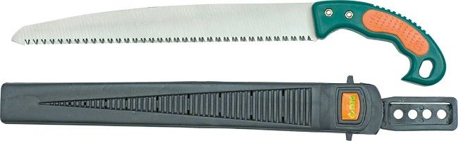 Piła ręczna jest przeznaczona do całkowitego przecinania gałęzi z ergonomicznym uchwytem i plastikową obudową do przykrycia brzeszczotu.