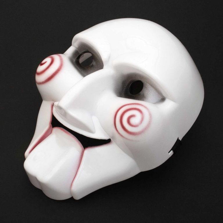 Maska zabójcy Jig Saw na najwyższy moment szoku. Wiernie odmalowany w oryginale, a także będący mieszanką komiksowego wyglądu i nieprzewidywalnej przebiegłości, natychmiast zajmie twoje miejsce w metrze, jeśli jest zatłoczone. Nawet na imprezach wystarczy stać nieruchomo z tą maską lub poruszać się powoli. Nikt nie wie, co knuje, twoje myśli są ukryte za maską. Proste procesy, takie jak krojenie cytryny w napój długim nożem, sprawiają, że kawałki maski są naprawdę przerażającym aktem. Prawdziwy prezent nie tylko dla fanów ultra ostrych kultowych horrorów! Wystarczy, że wyciągniesz z szafy klocek i czerwoną muszkę i pożyczysz rowerek od sąsiadów dzieci, a twoje przebranie będzie idealne.