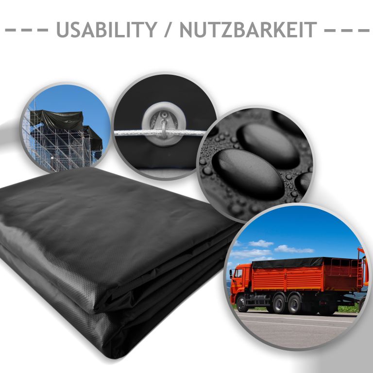 Plandeka JAGO 650 g/m², aluminiowe oczka, czarna, 5x7 m