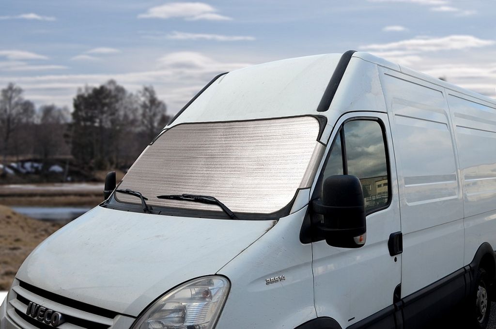 Plandeka na przednie szkło o wymiarach 180 x 85 cm doskonale ogranicza wzrost temperatury w aucie stojącym na słońcu w letnie dni. Zimą zapobiega oblodzeniu przedniej szyby stojącego samochodu. Montaż odbywa się poprzez umieszczenie go na zewnętrznej stronie szyby samochodu i zamknięcie jego klap w drzwiach. Dzięki rolkom wszytym wewnątrz klap praktycznie niemożliwe jest wyciągnięcie parawanu z zamkniętych drzwi. Łatwe przechowywanie ekranu zapewnia wszyta gumka, którą można wykorzystać do zabezpieczenia ekranu w pozycji zwiniętej.