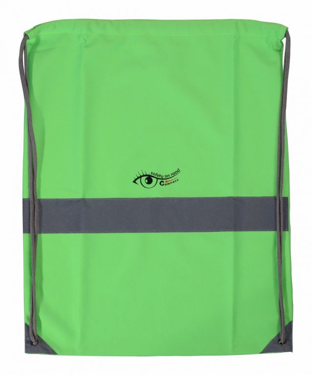 Kolorowy plecak ostrzegawczy z paskiem odblaskowym o wysokim współczynniku odbicia światła. Plecak można nosić zarówno klasyczny na obu ramionach, jak i prostą torbę na sprzęt sportowy na jedno ramię.