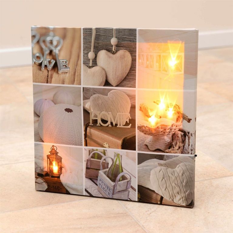 Stwórz przyjemną atmosferę dzięki podświetlanym obrazom LED. Motyw domowy z pięcioma ciepłymi białymi diodami LED stworzy przyjemną atmosferę. Dekoracyjne obrazy wydrukowane nowoczesnymi, wysokiej jakości odbitkami fotograficznymi z pewnością przyciągną uwagę w każdym pokoju. Zasilanie bateryjne umożliwia umieszczenie obrazu w dowolnym miejscu. Z tyłu obrazu znajduje się wiszący wspornik.