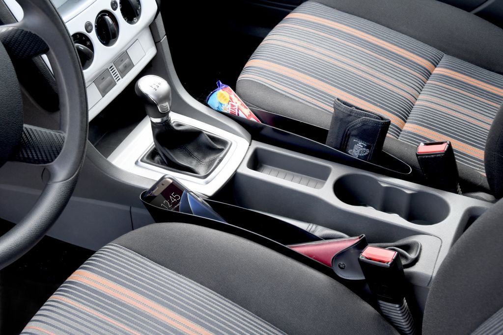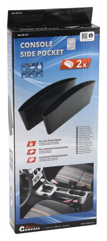 Praktyczny zestaw dwóch kieszeni do przechowywania drobiazgów w pojeździe. Nadaje się do umieszczenia między siedzeniem a konsolą środkową. Jeśli produkt jest zabrudzony, po prostu przetrzyj go wilgotną ściereczką.