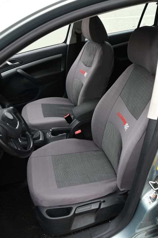 Komplet pokrowców "CARBON" na cały samochód. Pakiet zawiera pokrowiec na siedzenie i oparcie kierowcy, pokrowiec na siedzenie i oparcie pasażera, pokrowiec na tylną niepodzielną kanapę oraz 5x pokrowiec na zagłówek.