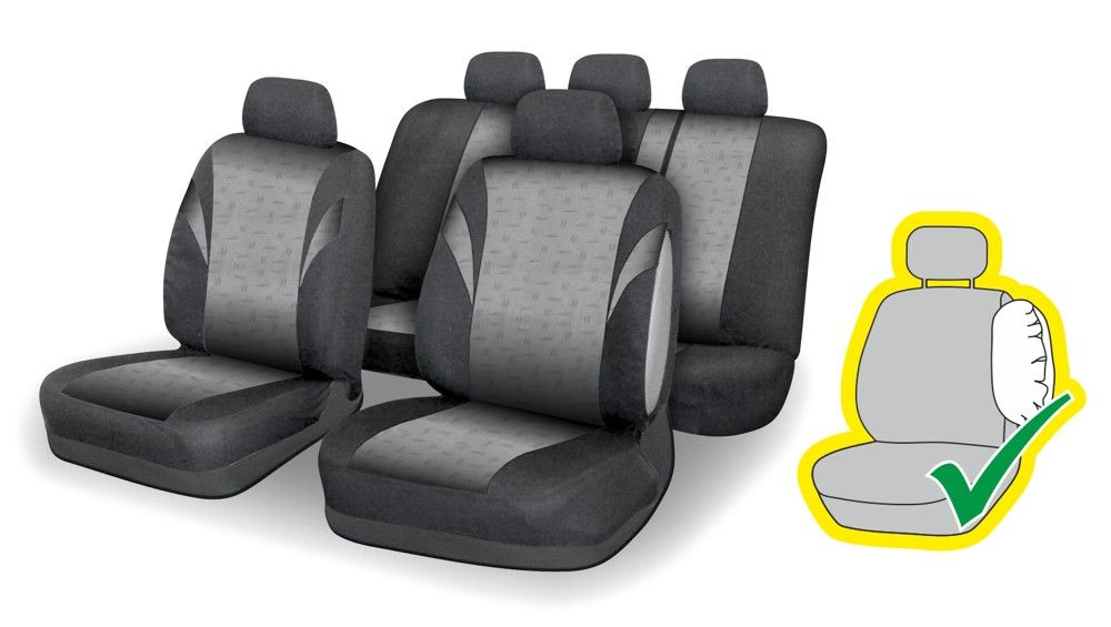 Pokrowiec może być stosowany na siedzeniach, które mają wbudowaną boczną poduszkę powietrzną bezpośrednio w oparciach przednich siedzeń. Pakiet zawiera pokrowiec na przednie siedzenie (2 x), tylną kanapę (całość), tylne oparcie (dzielone na 3 części za pomocą zamka błyskawicznego), zagłówek (5 x). Dzięki zamkom na tylnym oparciu pokrowce można stosować również w samochodach z dzielonymi tylnymi siedzeniami, a oparcia można złożyć bez konieczności zdejmowania pokrowca.