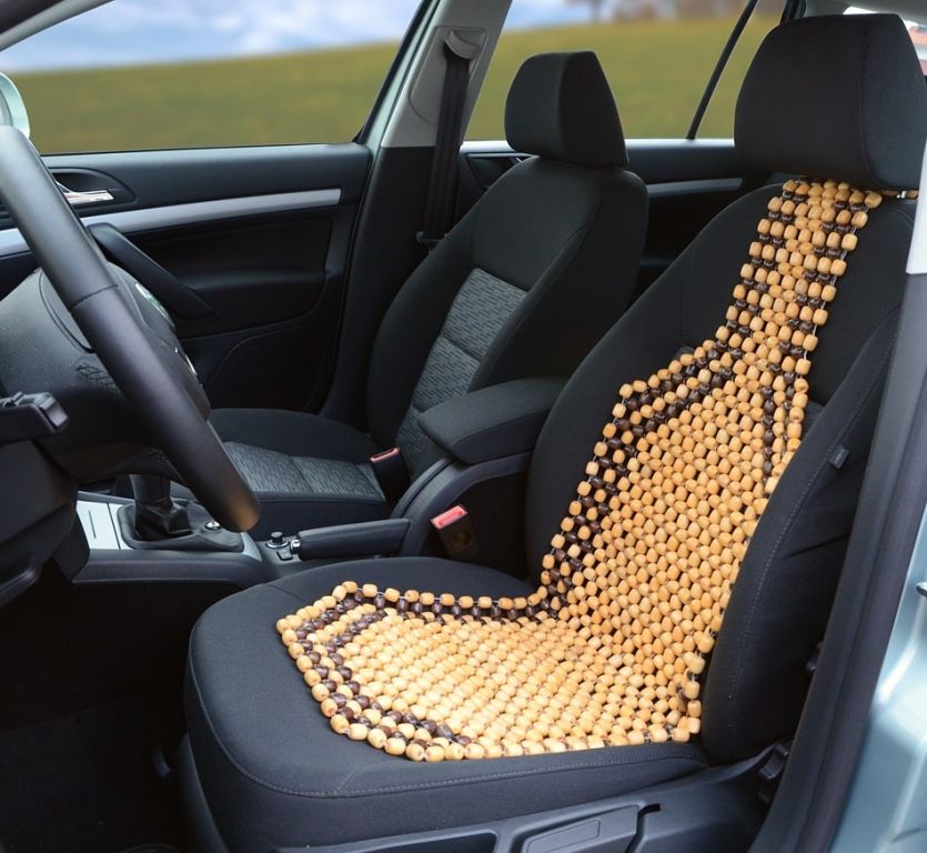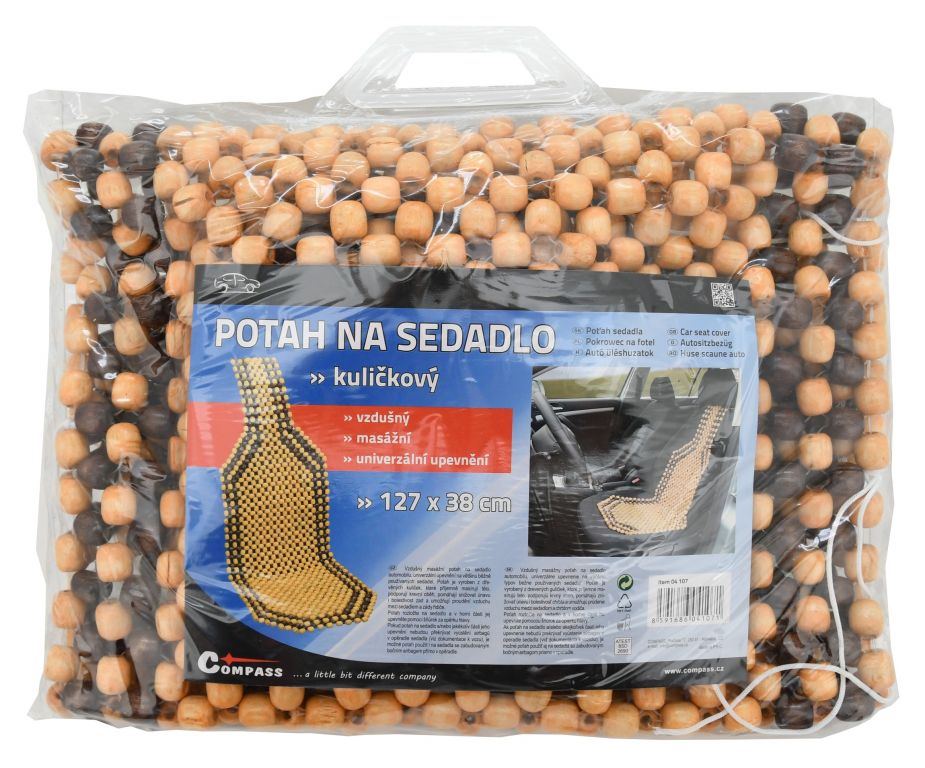 Pokrowiec wykonany jest z drewnianych kulek, które przyjemnie masują ciało, wspomagają krążenie krwi, pomagają zmniejszyć zmęczenie i ból pleców oraz umożliwiają przepływ powietrza pomiędzy siedzeniem a plecami kierowcy. Rozłóż pokrowiec na siedzeniu i przymocuj go u góry sznurkami za zagłówkiem. Jeżeli pokrowiec i/lub jakakolwiek część jego mocowania nie zachodzi na wyloty poduszek powietrznych w oparciu fotela, pokrowiec można również zastosować na siedzeniach z wbudowaną boczną poduszką powietrzną bezpośrednio w oparciu.