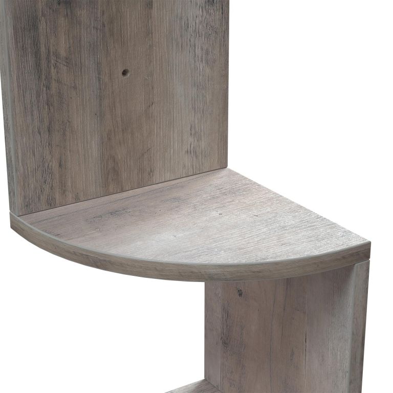 Odmień swoje wnętrze dzięki tej stylowej półce narożnej w modnym kolorze greige. Oryginalny cik-cak przyciąga uwagę i pozwala wyeksponować ulubione dekoracje, książki czy rośliny.