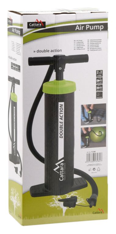 Pompka ręczna o podwójnym działaniu jest przeznaczona do pompowania powietrza w obu pozycjach - poprzez pchanie w dół i podciąganie. Jakość Cattara.