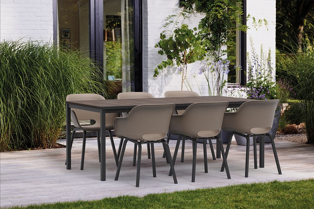 Szukasz połączenia stylu, wytrzymałości i trwałości? Stół ogrodowy PORTO to właściwy wybór dla każdego, kto szuka praktycznego i eleganckiego rozwiązania nie tylko do ogrodu lub na taras, ale także do domu. Ten prostokątny stół może pomieścić 8 osób i oferuje mnóstwo miejsca, aby wygodnie usiąść z rodziną lub przyjaciółmi. Czarna metalowa konstrukcja nadaje stołowi wytrzymałość i stabilność, a plastikowy blat w wykończeniu drewna WALNUT zapewnia naturalny wygląd. Blat wykonany jest z mocnego i unikalnego materiału DECOCOAT, który nie tylko świetnie wygląda, ale jest również niezwykle trwały. Zaprojektowany, aby wytrzymać żywioły, stół PORTO jest idealnym wyborem do użytku na zewnątrz. Dzięki swojej trwałości i jakości KETER będzie służył przez wiele lat.