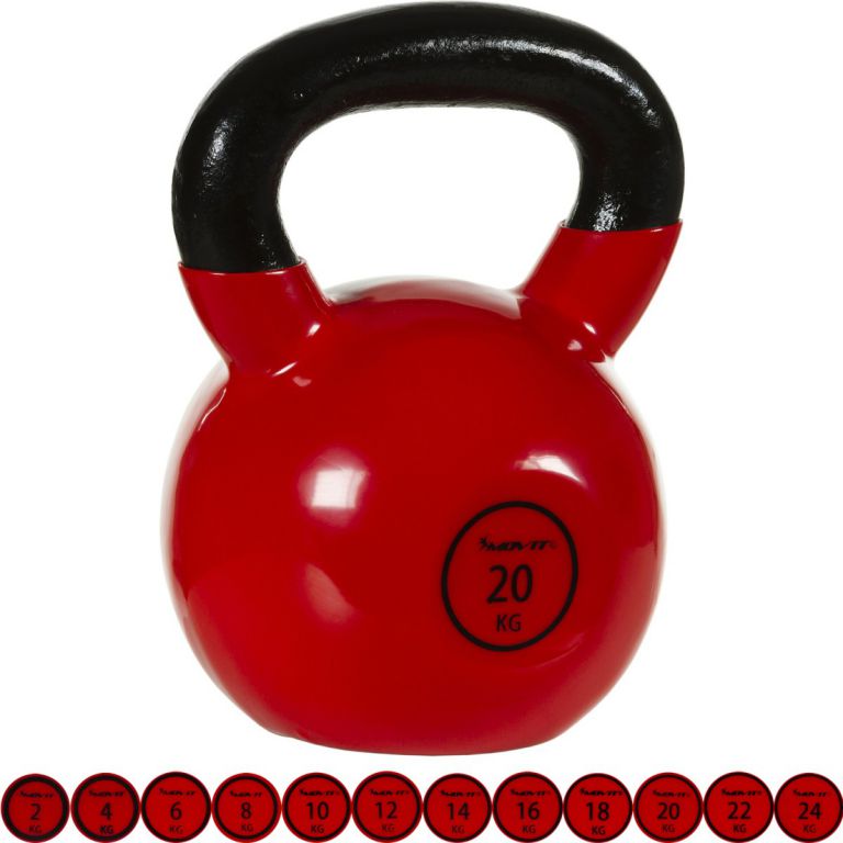 MOVIT® Profesjonalna hantla Kettlebell z pokryciem winylowym. Odważniki Kettlebell zostały tak wykonywane, aby trening siłowy był jak najbardziej optymalny dla naszego organizmu. Masywne, profesjonalne wykonanie z jednego odlewu. W tym celu rączka została przeprojektowana, by zapewnić najlepszy chwyt i znakomite rezultaty przeprowadzanych treningów. Klasyczne ćwiczenia z Kettlebell polegają na wymachiwaniu, przysiadach, pchaniu. Ich waga opisana jest na obciążeniach, co ułatwia ich identyfikację.